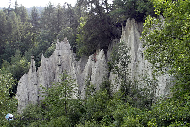 Elérkezett az utolsó nap, csak közeli úticélok szerepeltek mára. Először is a mintegy 5 km-re lévő Terentenbe mentünk, ahonnan egy könnyű félórás sétával értük el a terenteni földpiramisokat. Az erdei út végig egy patak mellett vezetett, míg elértük a földpiramisokat. Ez tulajdonképpen egy erózió által létrehozott geológiai képződmény. A felül levő keményebb kőzet megvédte az eróziótól az alatta levő puhább kőzetet, így keletkeztek az oszlopszerű képződmények. Ilyet több helyen is lehet látni, de a legnagyobbak Bozen környékén, a Ritten-hegységben találhatók. A terenteni a kisebbek közül való, de ez volt a legközelebb, és legalább ilyet is láttunk.
