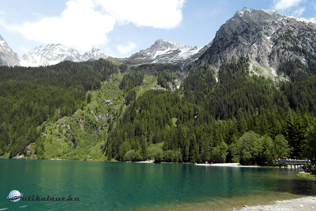 Visszatértünk a faluba, és a parkolóban felfedeztünk egy magyar rendszámú autót. Eddig egyet sem láttunk, még kamiont sem, magyar szót is csak Innsbruckban hallottunk. Innen a kevésbé híres, ám szép Antholz-tóhoz indultunk. A róla elnevezett völgy végén, a Reisenferner-Alm Természetvédelmi Terület mellett 1418 m magasságban találjuk a tavat. Az idevezető út, és a tó környezete is elnyerte a tetszésünket. Szombat lévén elég sok kiránduló volt a tó környékén, de nagy lökdösődés azért nem volt.