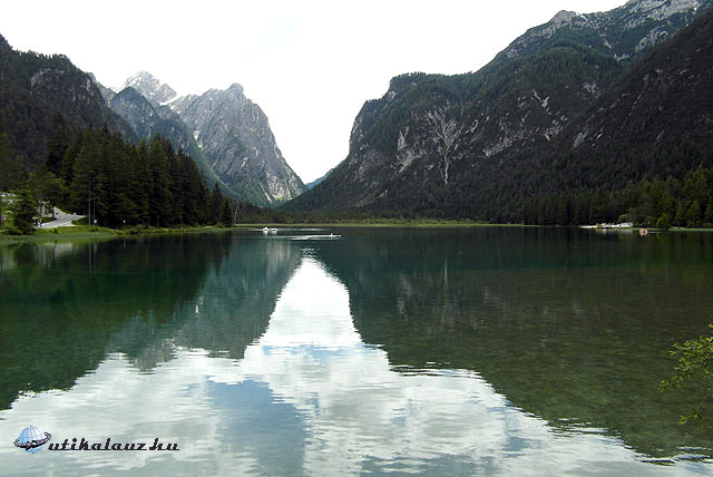 Ekkor jött az ötlet, menjünk át a közeli Toblachba, ott is van egy tó, nézzük meg azt is. Toblach magas hegyek között, gyönyörű környezetben fekszik, a tó kissé távolabb, kb. 5 km-re található. Szerintem az eddig látottak közül ez volt a legkevésbé tetszetős, de azt azért nem állítanám, hogy nem szép.