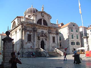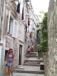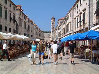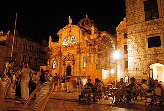Másnap a délutáni strandolás után este bementünk busszal Dubrovnikba. A főutcán a megszokott nyüzsgés. A Szent Balázs templom bejáratánál, az Orlando-oszlop előtt valami helyi népzenét játszó együttest álltak körül rengetegen.