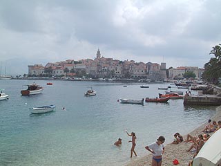 Délelőtt elautóztunk Orebicsbe – útközben leküzdöttük az egyik legnagyobb szerpentint – majd az útikönyvre hallgatva autós komppal mentünk át Korculára. (A könyv szerint a személyhajók drágábbak. Így 156 kuna volt oda-vissza, személyhajóval alig fele lett volna. Ennyit a hiszékenységről, illetve butaságról. legközelebb előbb tájékozódunk, aztán döntünk.)