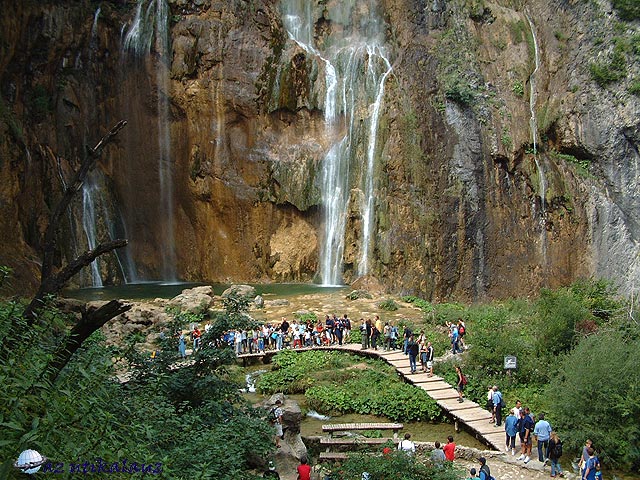A legnagyobb vízesés az alsó tónál volt, de a felső rész jobban tetszett. Vadabb volt a táj, többet kellett meredek ösvényeken kapaszkodni, és talán ezért is, kevesebb volt a turista. Az arcok, ruhák, sapkák szerint a horvátok mellett távol-keletiek, arabok, zsidók és elsősorban olaszok özönlötték el a környéket 10-11 óra körül. Néha alig bírtuk kerülgetni őket. A visszaúton ismét a busz-vonatot használtuk. http://www.np-plitvicka-jezera.hr.