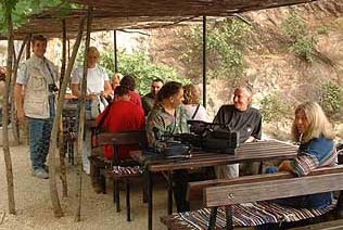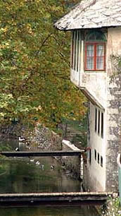 Mielőtt a tekkihez érünk érdemes átsétálni egy hídon a folyó túlsó partjára, hogy a középkorból származó malom maradványait megnézzük, és a hatalmas függőleges sziklafal aljához tapasztott dervisházról fotót csináljunk. A folyó másik oldalán található elegáns étteremben akár meg is ebédelhetünk. Az étlap szerint különösen nagy a választék halételekből, ami persze érthető a közeli pisztrángos miatt.