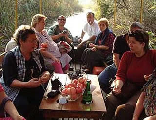 Gránátalma, szőlő, törkönypálinka a csónakban Csoportos túrál a csatornákon