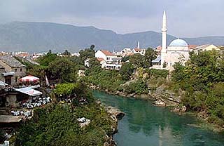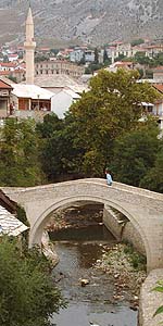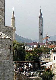 Mostarban 2002-ben jártam először. Akkor még a házak többsége magán viselte a háború nyomait, sok teljesen romokban volt. A Neretva két oldalán lévő városrészeket közigazgatásilag külön részként kezelték (2003-ig). A város már akkor is rendezettnek tűnt, a Neretva keleti partjával párhuzamosan egy forgalmas korzó működött sok kávéházzal, s a kávéházakban, a teraszokon ülő helyiekkel. Külföldieket, belföldi turistákat akkor nem nagyon láttunk.