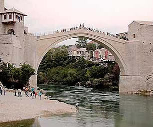 Látványosságok közül ne hagyjuk ki a hídugrást. A felújítás óta újra él az az ötszáz éves hagyomány, hogy az igazi mostariaknak legalább egyszer fejest kell ugrani a hídról a Neretvába. Hajdan a hídtornyokban kávézgató török vezíreket szórakoztatták a bátor mostariak a mutatvánnyal.