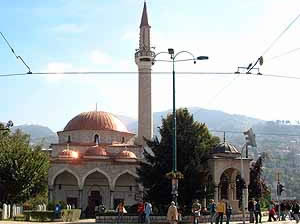 A száz méterenként álló muzulmán templomok közül, a bazár keleti szélén álló Gazi Husrev dzsámiról mindenképpen külön is szólni kell. A helyiek röviden Begova-dzsáminak – bég-dzsáminak hívják. Kicsit úgy tekinthetjük, mintha a miénk is lenne, mert az építés költségeit jó részt mi finanszíroztuk.