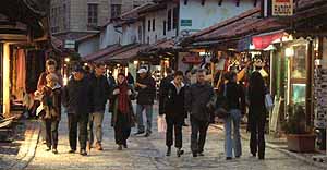 A pusztítások ellenére ma szebb mint a háború előtt volt, mert középkori formában újjáépítették az iparosok, kereskedők vörös cseréppel fedett házait. A mintegy 40 apró utcában mesterségenként elkülönülve dolgoznak ma is a rézművesek, bádogosok, lakatosok, szőnyegkészítők, sütik a különböző húsos, gombás, zöldséges lepényeket, a cevabcicát, gesztenyét, készítik a méztől émelygős keleti édességeket.
