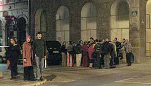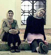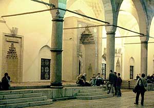 A Husrev dzsámi bejárata beszélgető fiatalokkal |