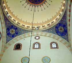 Tekintetünket felfelé fordítva lenyűgöző látványt nyújt a 13×13 méteres központi teret fedő 26 méter magas kupola.
