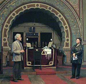 A 80 éves épület alsó része ma közösségi ház – étterem, konferenciaterem, klub, találkozó hely. (A folyó északi oldalán lévő régi zsinagógát múzeummá alakították – azt mi most nem láttuk.) A hitközség helyi vezetője elmesélte, hogy a világháború előtt 15 ezer főt számlált közösségük. Közülük a háború után 707-en jöttek vissza, háromszázan más országokban telepedtek le, tizennégyezren elpusztultak. Mára csak mintegy kétszázan maradtak, mert a fiatalok az utolsó háború alatt elhagyták a várost.