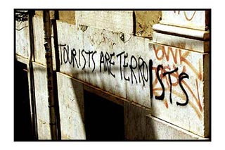 Helyismerettel nem rendelkezvén, de szállásunk címének birtokában a taxi tűnt a legjobb alternatívának a reptérről. Meg egyébként is az útikönyv szerint 10eurónál nem nagyon lehet több a díj a belvárosba. Biztos ami biztos, megérdeklődtük a helyszínen és ott is hasonló választ kaptunk. Mire sorra kerültünk a taxiállomáson, a sok egyen bézs színű kopott merci, és még kopottasabb sofőrjeik után megáll egy elegáns újabb évjáratú modell, jól öltözött sofőrrel, és még angolul is beszél valamennyire..gondoljuk, ez biztos nem ránk vár, de aztán mondja, h nyugodtan szálljunk be. Az elején még működő taxióra kijelzője valahová eltűnik útközben, segítőkész sofőrünk meg sorolja a város nevezetességeit, még egy “olcsó” (mindössze! 20 euróért meg lehet kajálni) és “very nice” éttermet is ajánl figyelmünkbe, sőt még a környező kisvárosokba is elvinne minket az egyik napon, persze megfelelő jutalék ellenében. Kiszállás után Mr. Very Nice (ahogy azóta is emlegetjük) benyújtja a számlát: 20. Giuseppe (szardíniai útitársam) már nyújtaná is a pénzt, de én azért emlékeztetem kedves sofőrünket, hogy a taxik átlagára ebben a városban úgy 10 euró, és nem szép dolog megtéveszteni a gyanútlan turistákat, de ha már ilyen kedves és segítőkész volt akkor talán 15öt megérdemelne. Át is nyújtom a 15öt, ő meg sértődötten odaveti, hogy ha nekünk ennyit ért meg, akkor jó, és kellemes nyaralást majd elhajt…