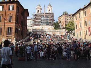Érkezés Ciampino repülőtérre (Dublinból – a szerk.). A klímaváltozás sokkoló. Induláskor +9 fok zuhogó eső, érkezéskor +30 tűző napsütés. A háromórás út a világelső fapados légitársasághoz képest kellemes, ez főként köszönhető Alessandro-nak a vezető légiutas-kísérőnek, aki egy percig se hagyta unatkozni az utasokat. Na meg a feltehetően német kapitány, akinek szinte egy szavát se lehetett érteni. Mivel még Alessandro rábeszélő képessége se volt elég arra, hogy megvegyük a 8eurós buszjegyet a városba, az átszállásos metró+busz variáció (2euró) hallatán meg a csajok kezdtek el hőbörögni, így kénytelenek voltunk a taxit választani. A még magyar társaiknál is rosszabb arcú taxisok 30eurós ajánlatára rábólintottunk (négyfelé osztva elfogadhatóbb összeg), bár valószínűleg kevesebből is kijött volna ha még a taxióra is működik.