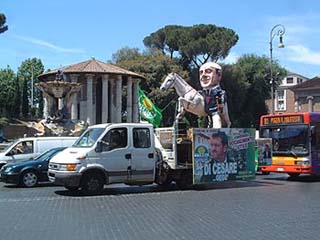 Aztán indulás gyalog a városba a San Giovanni – Colosseo – Piazza Venezia útvonalon. Útközben futó pillantás a Forum Romanumra, meg a Mussolini által Viktor Emánuel tiszteletére emelt gigantikus emlékműre. Utána tovább a Via del Corso-n, pénzhajítás a Fontana di Trevi-be, ahol elfelejtettem kívánni bármit is, sör a Campo di Fiori egyik angolszász kocsmájában (6euró), ami után inkább ragaszkodtam a 0,66os Peronihoz.. Tovább a Piazza di Navonara, szökőkút, meg a templom ami le akar dőlni, aminek Rocco, Giuse nővérének barátja megpróbálta elmesélni a sztoriját is, de a végén nem lettünk sokkal okosabbak. Úgy 3 óra tájban indulás haza éjszakai busszal, ami ugyanúgy jegy nélkül “működik” mint a bkv hasonló szolgáltatása.. az ellenőröknek is kell aludniuk valamikor.. Egyébként meg jeggyel se lenne drága, €1ér 75 percig korlátlan számú buszon utazhatsz.