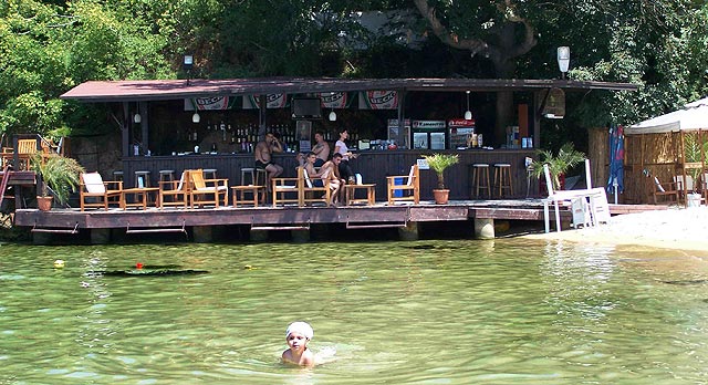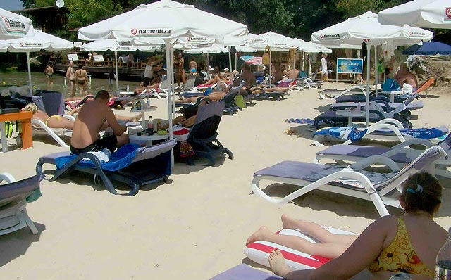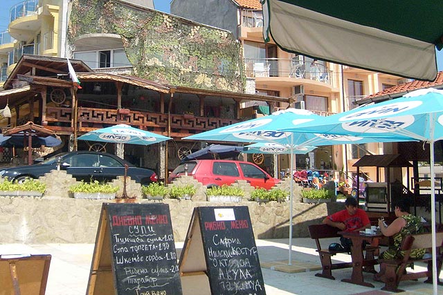 Nagyon sok vendéglőt találtunk, mindenféle felépítésben, a kínaitól a szerbig volt minden, alig tudtunk választani. Bosszantó volt hogy mindenütt csak cirilül volt kiírva a kinálat, és az is írottan. Emiatt még mi harcedzett „szerbek” sem tudtuk dekódolni a szöveget. Az egyetlen hely, ahol az étlapon angol szöveg is volt, az a strand mellett lévő szerb restiben volt. Idegennyelvet szinte senki sem beszél, csak a gazdasszonyunk fia és lánya tudott angolul. A bolgár nyelvet nem nagyon értettük, pedig azt mondták, hogy nagyon hasonlít a szerbre. Ha beszélünk a pincérrel vagy akárkivel akkor lehetőleg ne bólogassunk, mert azok azt fordítva csinálják, és állandóan félreértettük egymást. Ők se értették, hogy most mi bajunk van, meg mi sem hogy nekik, muris volt.