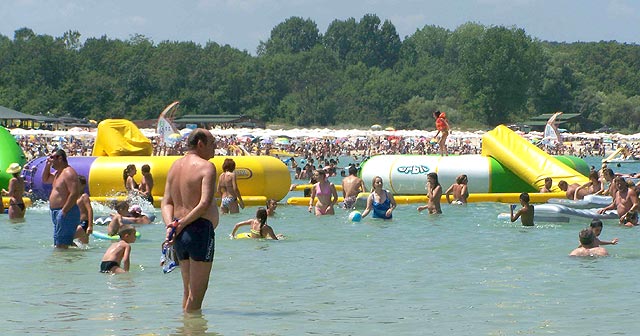 A két napágy és a napernyő 18 levába került naponta, az 10 euró. A viz csak 30 méter után vált ellepővé. Épp ideális a gyerekek számára. A strandnak persze volt nem fizetős része is, de azt inkább kihagytuk. Ott is szanaszét volt dobálva minden, a viz meg tele volt hínárral és sziklákkal.