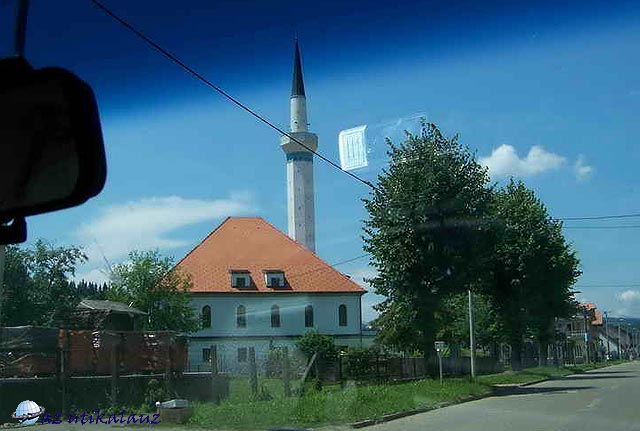 Eszékig nem volt semmi gond, a határon is simán átmentünk, meg se néztek bennünket. Az autópályára nem mentem fel, mert úgy gondoltam, hogy ráérünk, és az ára megmarad üzemanyagnak. Nem is lett volna ezzel semmi gond, hogy ha Nasice-nél nem lenne valami irtózatos nagy útépítés, ami majd 1 óra dugót jelentett a tűző napon. A másik gondunk meg Boszniában volt, mert a nálunk a mariskának becézett dzsípíesszes kütyü nem tudta, hogy a Cehici és Trzacska Rastela közötti határátkalő megszünt. Az út viszont nagyon szép tájakon vezetett keresztül. (A képen egy dzsámi Boszniában)
