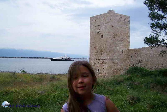 A másik úticélunk egy régi vármaradvány volt. Elég nehezen közelíthető meg, kétszer is bele kellett gázolni a tengervízbe, mire odaértünk. Valószínűleg van egy út az erdőn keresztül is oda, de mi a Kozjak falu kikötője felől közelítettük meg a parton haladva.