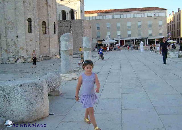 Egyik estefele elmentünk Zadarba, megnézni az óvárost. Könnyen oda is találtunk, de a parkolók este hat után mind tele voltak. Nagynehezen találtunk helyet, amit este tízig meg is fizettetnek óránként 3 kunával. A parkolójegyekhez csak fémpénzzel jutunk hozzá!