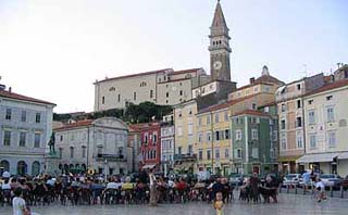 Este térzene, és a város történetének legszebb korszakát, a velencei reneszánszt idéző ruhákba öltözött kikiáltók, előadók szlovén nyelvű (ezért számunkra megfejthetetlen tartalmú) műsora a Tartini téren, részben még a nyári Tartini fesztivál lecsengéseként.