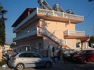 . Itthon a korinosi campingről is jókat olvastunk, azonban első körben csak a tengerpartig mentünk, hogy szemügyre vegyük milyen a víz. Tiszta volt és medúza mentes, a tavalyival ellentétben. A parton bóklászva megláttuk a tavaly kiválasztott éttermünket és előtte Jorgost, akivel csaknem barátként üdvözöltük egymást. Én ugyan még mindig nem tudok görögül, ő nem igazán tud angolul, inkább próbálkozik magyarul. Röviden elmondtuk, hogy akkor érkeztünk, mire ő rögtön segítséget ajánlott szállás ügyben. Elment telefonálni, majd elvitt a motorjával egy apartmanházhoz. Viszonylag új apartmanház, fenyő bútorokkal, klímával, tv-vel felszerelve, a kialkudott ár 20 E/éj/ap. Visszavitt az étteremhez és boldogan foglaltuk el szállásunkat.