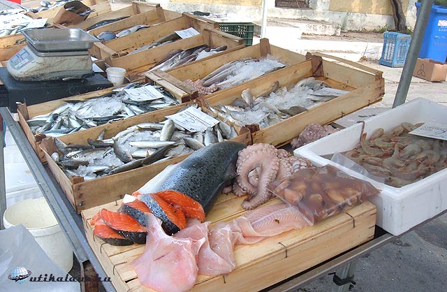 Fürödni az első nap délutánja kivételével Pydnára vagy a sólepárlóhoz jártunk. Az első egész napunk délelőttjén, pénteken piac, amit látnunk kellett, és természetesen gyümölcsöket, zödségféléket bevásároltunk. Halárus több helyen is volt, szívesen kiküldeném tanulmányútra oda azokat, akik itthon kőkeményen csinálják a HACCP-t. (Ez egy minőségbiztosítási rendszer az élelmiszer kereskedelemben és a vendéglátásban. Uniós előírásokra hivatkozva életszerűtlen elemekkel (is) dúsítva – a szerk.)