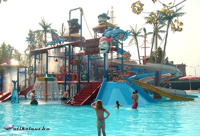 A felnőtt belépő 14,5, a gyerek 11 Eur. A kalózos rész új és az egyik legnagyobb a meglévők között. Csúszda is van jónéhány, a nagyokra 140 cm alatt nem engednek fel. A medencék nagyok és mind lassan mélyülők. Mi egy kellemes napot töltöttünk el itt és ajánlom mindenkinek, önálló programként, de nem fakultatívban.