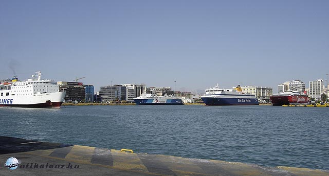 Délután 16 órakor a kikötőben voltunk. A megtett út 1630 km. Az E75 nemzetkőzi út Pireuszban végződik. Na itt megmutatkozott a feleségen navigációs tehetsége. Athénban és Pireuszban irdatlan forgalom volt. A kikötő körül 8 sávos út van (4 sáv az egyik irányban, 4 sáv a másik irányban). Azon kellet átverekedni magunkat be a kikötőbe ahol külön forgalmi szabályok és utak vannak. De ez is sikerült. A kikötő az egy fantasztikus, pulzáló, élő szervezet, egy rendezett kavalkád. A kikötői rendőrök munkáját figyelni fantasztikus dolog. A sípjaikkal irányítják a forgalmat, valami leírhatatlan sípolással és lendülettel. A kikötő tele van kamionokkal, amik a kompokból hordják ki a trélereket, de olyan fürgén mint ha autóversenyzők lennének, behajt a komp belsejébe, és már dudálva hajt ki a trélerrel.