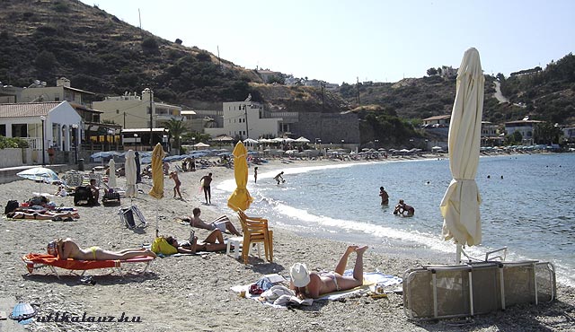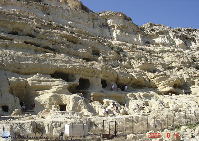 A híres matalai strandon is voltunk. Itt találtam a parkolóban egy magyarországi rendszámú Fábiát. Megnéztük a barlangokat. Érdekes volt. A strand szép, de az édesvizű zuhanyzó nem működött, így az öntöző slaggal zuhanyozott mindenki, mi is.