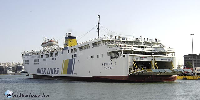 – a kompjegy kiválasztás és megrendelés az Anek Lines (www.anek.gr) komptársaságnál a neten keresztül történt (ez a legolcsóbb a komptársaságok közül, igaz a leglassabb is – mármint a hajójuk), a jegy kifizetve számláról Visa kártyával 319 euró Pireusz-Heraklion-Pireusz útvonalra. A megrendelés után a komptársaság emailben küldte a “booking reference number”, tehát a foglalási számot és a jegyek számait is (3 személyre + a személygépkocsi) mellyel a jegyeket a komptársaság irodájában kell kiváltani a kikötőben.