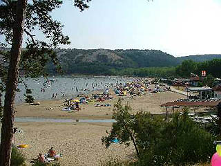 A strand homokos és nagyon lassan mélyülő, valóban ideális kisgyermekes családok számára. A víz 24-25 fokos, de a partközelben délután már meghaladja a 30 fokot. A levegő hőmérséklete 26-28 fok, de éjszaka sem megy 20 fok alá a hőmérséklet.