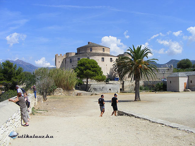 Miután a totális káosz is enyhült, megkezdődött a behajózás, és szintről szintre kanyarogtunk felfelé, míg beálltunk a végső helyre. A kompon jól működött a légkondicionálás, így a négyórás utat nyári öltözetben vészeltük át. Megváltás volt délben kiszállni a verőfényes napsütésben Bastia városában. A várost kihagytuk, mert a célállomásunk még nagyon messze volt, és előtte még számos érdekes helyet akartunk felkeresni. Az első rögtön a Nebbio katedrális lett volna Saint-Florente külső részén. Ám hiába néztem meg otthon a nyitva-tartási időt, a katedrális bizony zárva volt és csak 3 órára volt kiírva a nyitása. A tervnek megfelelően tovább mentünk, beSaint-Florente óvárosába, ahol kanyargós utcákon jutottunk fel a citadellához, ahonnan csodálatos kilátás nyílik az öbölre.