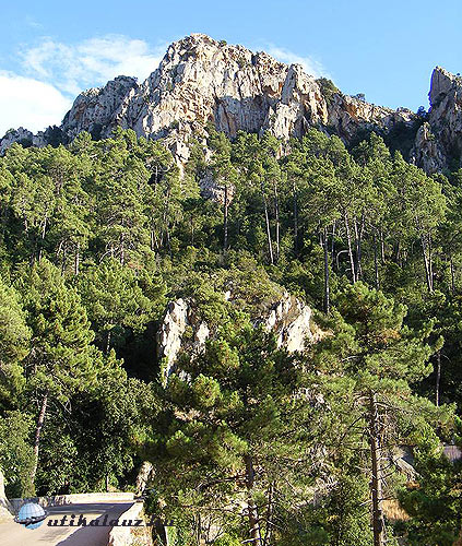 A Solenzara völgyben hatalmas kopár szirtek emelkednek ki az üde zöld fák közül