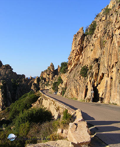 A Calvi – Sagone útvonal mindössze 117 km, de több mint 2 és fél órás menetidővel számol a GPS is. Nos, még ez is bőven alul van tervezve, hiszen az út olyan szinten kanyargós és szűk, hogy bátran számoljon mindenki még hosszabb menetidővel. Természetesen, ha valaki csak az utat és az előtte haladó járművet akarja nézni, akkor siessen csak bátran. Calvit elhagyva befelé haladtunk a szigeten és egészen Portóig nem is láttuk a tengert. Váltakozó minőségű utakon, viszont gyönyörű tájon haladtunk keresztül.