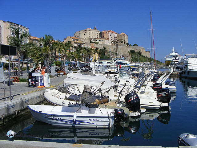 Calvi kikötője, háttérben a Citadellával