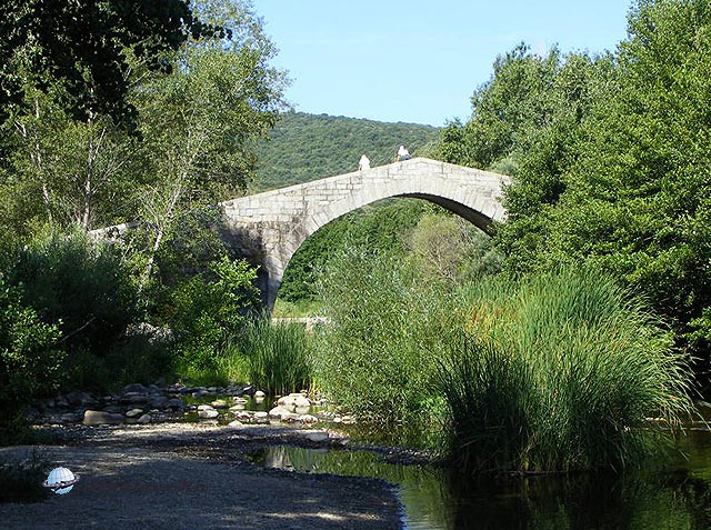 Ponte Leccia középkori genovai hídja a Golo folyó felett