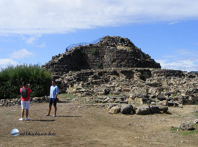 Ezután már csak az maradt, hogy a kikötői sétányon végigmentünk, ahol datolyapálmák szegélyezik az utat, és máris indultunk a következő cél felé, ami egy nuraghe volt, a Su Nuraxi, Barumini mellett. A szigeten mintegy 8000 nuraghe, azaz hatalmas, szabálytalan alakú kövekből, főleg bazaltból, összeállított lakótorony van a lepusztultság különböző állapotában. A falak építéséhez nem használtak kötőanyagot, csupán a saját súlyuk tartja össze azokat.