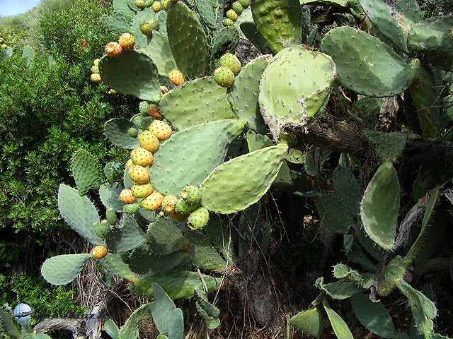 A szigeten mindenhol óriásira nőttek az ehető gyümölcsű medvetalp kaktuszok