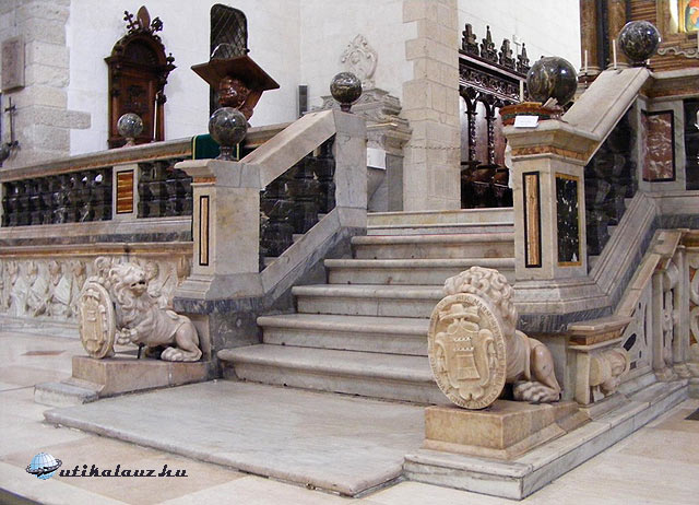 Sassari. A katedrális oltárához vezető lépcső az oroszlánokkal
