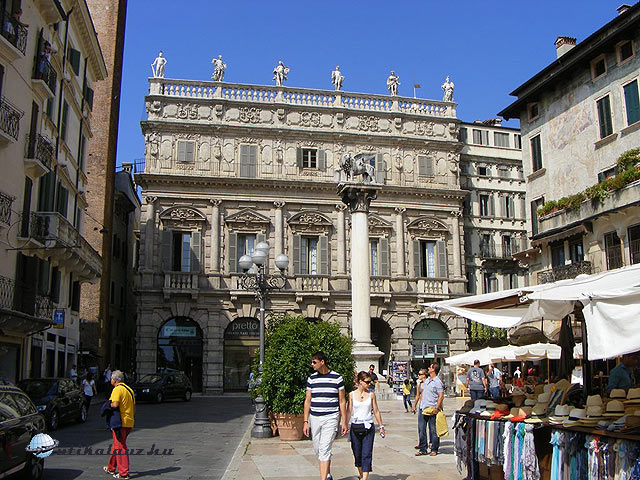 Verona. Piac a Piazza delle Erbén és a velencei oszlop