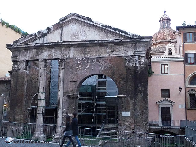 A későbbi korokban épületeket ragasztottak hozzá, a különböző házrészek izgalmas tömböt alkotnak. Ráadásul mellette magasodik két szépséges oszlop a valamikori Apolló templomból. Körülötte ásatás, de fém létrákon, hidakon, pallókon meg lehet közelíteni Octavia porticusát.