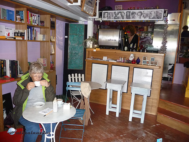 Ekkorra már nagyon megkívántam egy kávét, szerencsére a tér jobboldalán találtam is egy kicsi kávézót, mely egyben könyvesbolt is volt. A kávét hihetetlenül olcsón adták. Az asztalon egy kétnyelvű, olasz-latin Tacitus feküdt. Kellemes halk dzsessz szólt, nagyon barátságos volt minden.