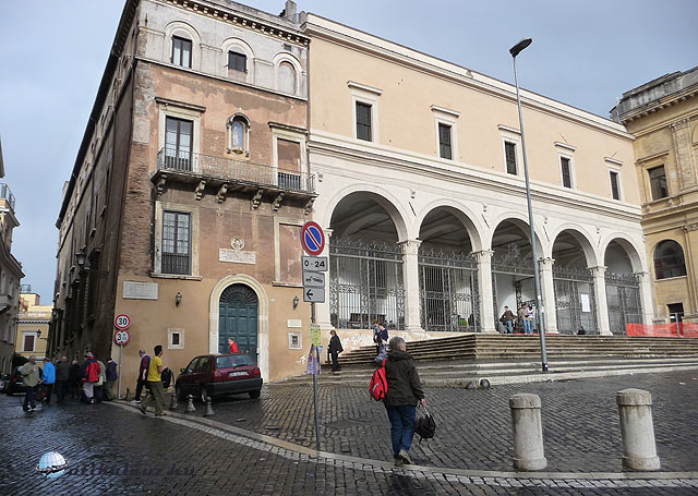 A Lateráni palota volt a hivatalos pápai rezidencia a középkorban – valójában a pápák nem laktak itt, mert a környék mocsaras volt és féltek a maláriától. A 19. században múzeum volt, ma a Vatikán hivatalai működnek benne. Be lehet menni az udvarba és gyönyörködni az árkádos udvarban – csak az ott parkírozó autókat lehetne feledni… Néztem, hátha látok vatikáni rendszámú autót, de egyet sem láttam.