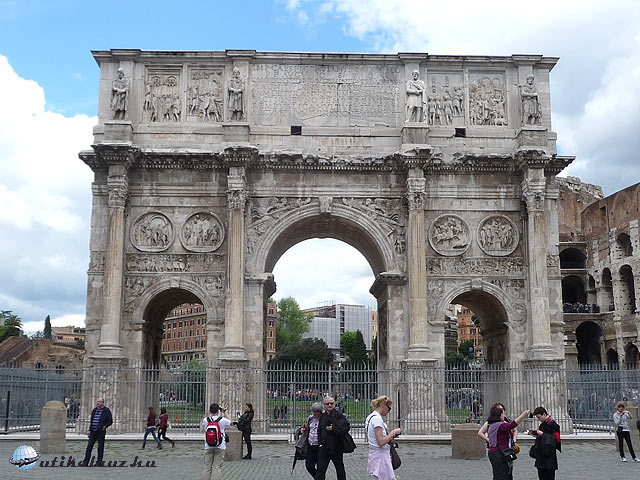Nehezen váltunk meg ettől a csodás épülettől. De annyi minden várt még ránk ezen a napon! Körbejártuk Constantinus diadalívét. Messzelátó kell, hogy az ember jól láthassa a domborműveket.