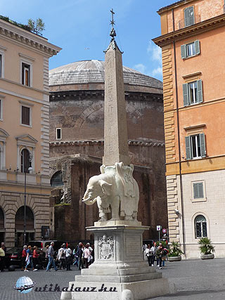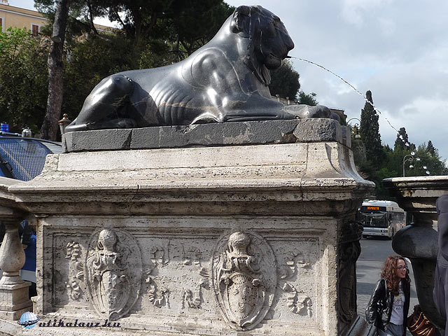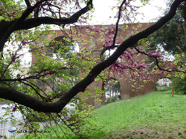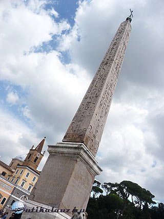 Mindenesetre kerítés választja el a park többi részétől. A maradványokon sütkérező macskák, a kerítésen tábla: „Ez a hely a macskáké”. A lakosság eteti az állatokat, akik méltóztatnak elfogadni az adományt. Állítólag a római macskák különböznek testalkatban a mi macskáinktól: az egyiptomi macskák leszármazottai. Én nem láttam különbséget: épp oly lustán napoztak, mint a mi cicáink. A Via San Viton végigsétálva, kissé túl Gallenius ívén ragyogó Pizzériára akadtam. Innen kissé lejtett az utca és kibukkantam egy terecskére. Hatalmas lakótorony magasodott a közepén, balra tőle templom. Csak a térképről tudtam kideríteni, hogy ez a Santa Maria del Monte templom.