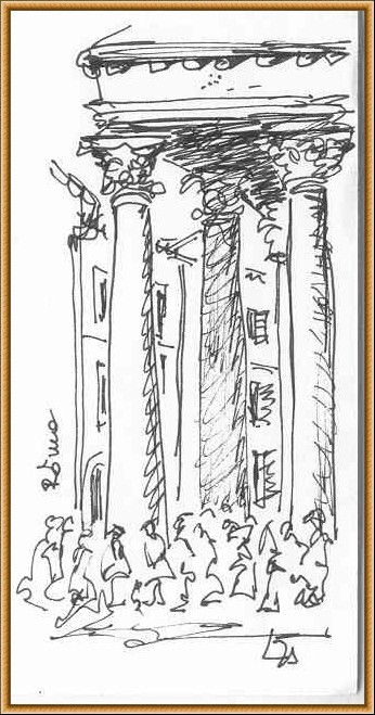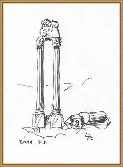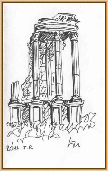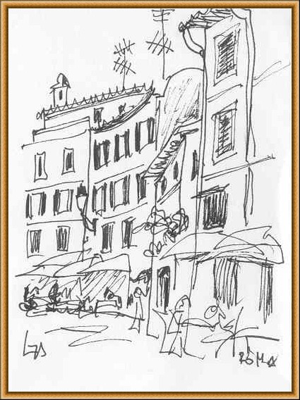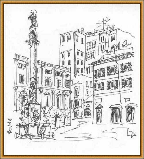 Most jártam először Rómában. Férjemet munkája néhány napra Rómába szólította, és én elkísértem. Elfoglaltsága nem volt túlzott, így bőven volt időnk együtt csodálni az örök várost. Munkamegosztásunk korábbi útjainkhoz hasonlóan alakult: ő fényképezett, ha együtt voltunk, és rajzoltam. Amikor egyedül jártam a várost, a fényképezőgép az én kezemben volt.
