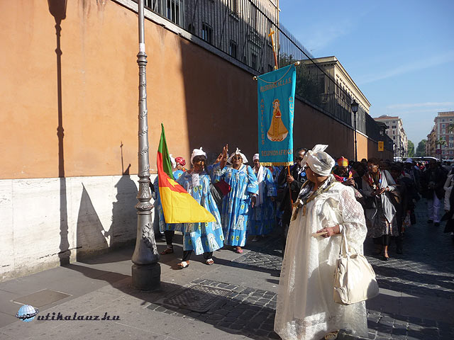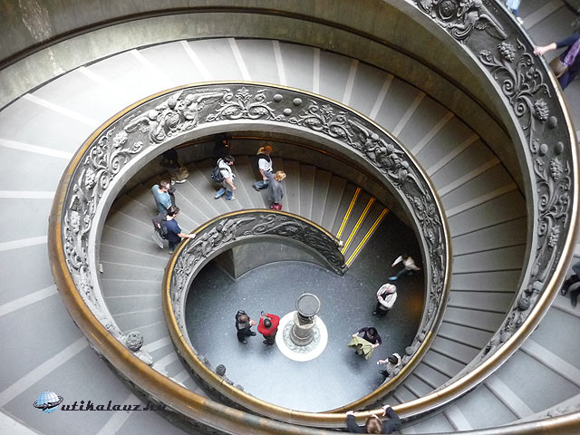 A harmadik nap a Vatikáné volt. Kényelmes reggeli után metróval utaztunk a Ottaviano San Pietro állomásig. Innen jócskán kell kutyagolni a Vatikáni Múzeum bejáratáig. Újra csak dicsérni tudtam az eszünket, hogy még Budapesten megrendeltem a jegyeket. Hosszú, tömött sor várakozott az utcán. A kapun belépve alapos ellenőrzésen estünk át, majd megkaptuk a végleges jegyünket. A sok látogató miatt új épületrészt alakítottak ki: választhattunk, hogy csigalépcsőn vagy mozgólépcsőn megyünk a fogadóépület emeletére, ahonnan a különböző kiállítások nyílnak. Ahány útikönyv, annyiféleképp nevezik és írják le a kiállításokat. Én a Vatikáni Múzeumok hivatalos honlapja alapján terveztem meg, mit is szeretnénk látni. A pénztáraknál adnak egy sematikus térképet, azon elég nehéz tájékozódni. Vettem azonban egy múzeumi vezetőt (13 €), amelyben jó leírást és a tájékozódást segítő alaprajz volt. A következő sorrendben néztük meg a múzeumokat. No nem végig, mert szinte lehetetlen mindent megnézni. Mi a következő kiállításokat néztük meg: