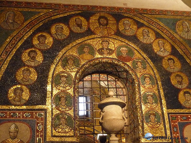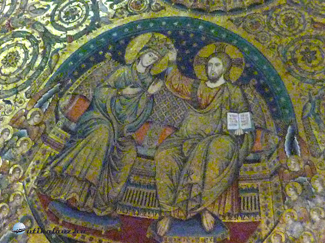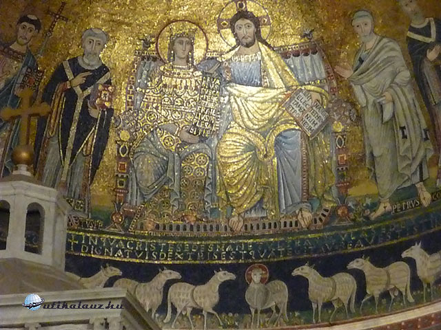 Amikor később visszatértünk, megcsodálhattuk a mozaikokat az apszisban, a diadalív „képeskönyvét”, a főhajóban – sajnos fényár nélkül.