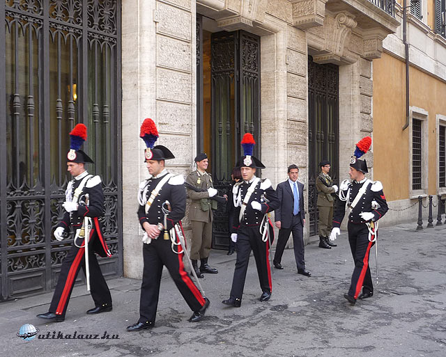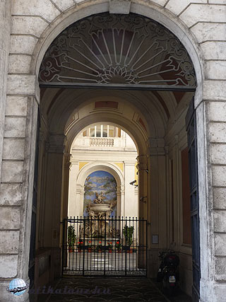 A templomban megúsztunk egy újabb záport. A lépcsősoron lefelé menni is fárasztó: 129 fok! Innen gyalog, a Via Corso felé indulva felkeressük a Palazzo Barberinit.. Szép kert övezi a palotát, amelyben Róma legnagyobb festészeti gyűjteménye található. Három emeleten lehet bolyongani teremről teremre. Itt minden nagy olasz festőtől legalább egy kép van. Egyszóval kihagyhatatlan élmény. Az olaszokon kívül persze van Dürer és Holbein is: Itt látható a híres VIII. Henrikről készült portré. Ahogy a Corsini palotában itt is pontos térképet kapunk, melyik teremben mit láthatunk. Általában minden múzeumban jó szóróanyagot találni.