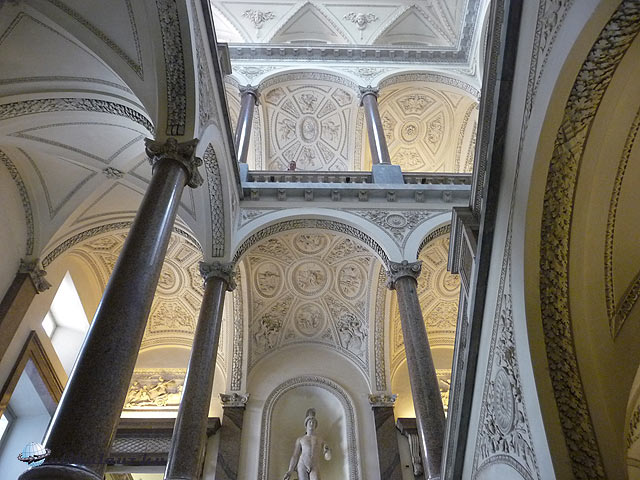 Csak úgy kapkodtuk a fejünket: ismerős szobrok néztek ránk mindenünnen: A Haldokló gallus, Augustus és Livia portréja, és sorolhatnám vég nélkül. Persze itt is van képtár – gazdag ez is. Valahol az emeleten van egy tárló arasznyi porcelánszobrocskákkal – mind zenélnek, tündériek.